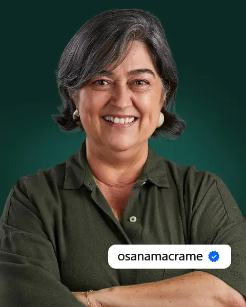 Aponte o celular e assista à Osana te guiando na criação de 3 peças reais. É como ter uma aula particular.