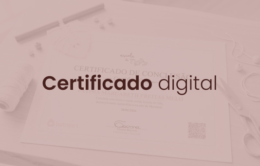 Sim. A Escola de Nós inclui um certificado digital de conclusão que te credita como artesã de macramê e aluna da maior escola de macramê do mundo.
